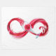 Símbolo infinito de flujo continuo de vino tinto vertiendo en vidrio de vidrio sobre fondo blanco.