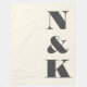 Manta de felpa con monograma moderno minimalista para boda de negro y crema para recién casados