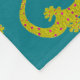 Mosaico, dibujo gráfico, de lagarto de Gecko, mostrado en colores tipo reptil, patrón de piel de oro, fuschia, cal, verde azulado, marrón y negro.