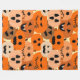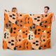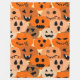 Esta gran manta de lana tiene un diseño de jack-o-linternas con caras diferentes que se repiten en cada trimestre.