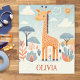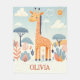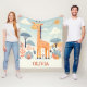 Esta linda manta personalizada para bebé presenta una adorable jirafa caprichosa en un hermoso entorno de sabana.