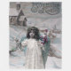 Una postal de Navidades franceses de dominio público. Presenta a un chica vestido de ángel Navidad que lleva regalos.