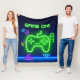 Juego sobre la manta de lana de videojuegos verde neón, azul, amarillo y púrpura.