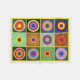 Diseño geométrico abstracto usando círculos concéntricos y colores psicodélicos por Rockett Graphics.