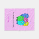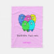 Esta manta acogedora para un tejedor es personalizada con un nombre, y tiene cinco ovejas de estilo personalizado en rosa, azul, amarillo, verde y turquesa, encima de las palabras "Knit one. Purl one." El fondo es rosa pálido.