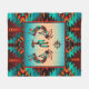 ¡Esta es una "manta Sherpa" del suroeste de Kokopelli! Cuenta con dos Kokopelli del Suroeste que tocan la flauta y bailan alrededor de un cactus bajo el sol en un fondo turquesa y Naranja de atardecer... Rodeado por un borde del suroeste en Turquesa, Naranja y diseño de arte original negro del artista Kerry Miller.