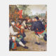Pieter Bruegel the Elder (1525-1530 - 9 de septiembre de 1569) fue el artista más importante de la pintura del Renacimiento Holandés y Flamenco, pintor e imprimidor de Brabant, conocido por sus paisajes y escenas campesinas (llamada pintura de género); fue pionero en hacer de ambos tipos de temas el foco en los grandes cuadros. Los historiadores del arte adivinan que nació en Breda o en Breugel (un pueblo en el municipio de Son en Breugel), ambos ubicados en la actual provincia holandesa de Brabante del Norte. Fue una influencia formativa en la pintura holandesa de la Edad de Oro y más tarde pintó en general en sus innovadoras elecciones de materia, como una de las primeras generaciones de artistas en crecer cuando los temas religiosos habían dejado de ser el tema natural de la pintura. Tampoco pintó retratos, el otro pilar del arte neerlandés. Después de su entrenamiento y de viajar a Italia, regresó en 1555 para instalarse en Amberes, donde trabajó principalmente como un prolífico diseñador de impresiones para el principal editor del día. Sólo hacia fines de la década cambió para hacer de la pintura su medio principal, y todas sus famosas pinturas provienen del siguiente periodo de poco más de una década antes de su muerte temprana, cuando probablemente tenía unos cuarenta y tantos años, y en la cima de sus poderes. Además de mirar hacia adelante, su arte revigoriza temas medievales como las babosas marginales de la vida ordinaria en manuscritos iluminados, y las escenas del calendario de los trabajos agrícolas envueltas en paisajes, y los pone a una escala mucho mayor que antes, y en el costoso medio de la pintura al óleo. Hace lo mismo con el mundo fantástico y anárquico desarrollado en las impresiones y ilustraciones de libros renacentistas. Cita:Wikipedia