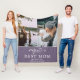 Mejor Mamá Moderna Foliage 2 Fotos Personalizados Madre Fleece Blanket. Tipografía blanca de moda sobre fondo violeta. 2 fotos completas de personalizados, mejor texto de mamá, sus nombres y un sencillo adorno follaje blanco. Añade tus fotos y tus nombres. Crea tu propio regalo personal para una madre por el Día de la Madre, cumpleaños o Navidades.