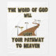 Este diseño de manta de lana tiene un tipo de letra cursiva condensada en kapsalon con letras negras y contorno que muestra la frase "La Palabra de Dios iluminará tu camino al cielo" con una colección de luz en la calle a lo largo del camino más un cartel que muestra la palabra Heaven apuntando por el camino en este tema de la biblia basada en la fe. Esta manta está hecha de una pulga de poliéster 100% suave y acogedora de carnicería con una impresión de sublimación de color vibrante de borde a borde y un punteo de doble borde con una máquina trasera de color blanquecino lavable.