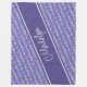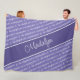 Esta bonita manta para chicas con tema de voleibol incluye la frase "El campo de voleibol es mi lugar feliz" en un tipo de letra casual escrito a mano junto con formas cardíacas con estampado blanco diagonalmente en un fondo morado - se puede personalizar con su nombre en una banda de color púrpura de ancho completo y grueso - fondo, franja de color y color de texto personalizado se puede cambiar a CUALQUIER color—elegir un color de fondo contrasta con el patrón de texto blanco - katz_d_zynes