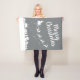 Esta elegante manta de Navidades de color gris plateado muestra la silueta del trineo de Santa con sus renos, que sobrevuela las casas en un sendero de estrellas. El texto, con una letra blanca y elegante, es totalmente personalizable.