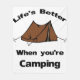 ¿Te gusta acampar como a nosotros? ¡Entonces sabes que esto es verdad! ¡La vida es mejor cuando acampas con la familia y amigos! El aire fresco, los sonidos de la naturaleza... ¡no es mejor que eso! Este diseño simple, negro y marrón con una tienda de campaña lo dice todo con pocas palabras. ¡Disfrútalo!