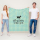 El diseño de fun fleece cobertizo presenta una silueta de cabra con un texto de "la vida es mejor con una cabra" en escritura moderna sobre el fondo de la manta de gingham de color azul