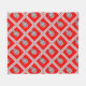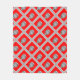Una manta de lax goalie con un patrón de palo lax sobre fondo rojo.