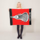 La manta Lacrosse presenta con un diseño lax de palo y bola sobre un fondo rojo. Editar texto para agregar el nombre del jugador y el número de equipo #.
