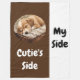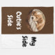 Manta divertida que muestra quién es el jefe. El lado izquierdo, más grande, de la manta dice "Lado de [Nombre de la Mascota]" y el lado derecho, más pequeño, dice "Mi Lado". Escrito en una tipografía fácil de identificar tipo Chewy en un esquema de colores marrón y blanco opuestos. Se puede usar para perros, gatos o cualquier mascota con la que "comparta" su cama. También disponible en tamaños más pequeños.
