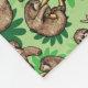 Una manta de lana dulce con un patrón de manchas en una rama y un fondo de hojas de cecropia verde brillante, una de las cosas favoritas de un perezoso para comer.