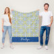 This fleece blanket features a vibrant yellow lemon and blue Mediterranean tile pattern. Perfect for adding a touch of Italian Amalfi coast style to your home decor. This cozy, lightweight throw is an ideal gift for housewarmings or anyone who loves bright, botanical summer aesthetics.