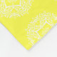Esta mandala blanca se sienta sobre un fondo amarillo limón. Los colores son alegres y tranquilos. Parte de la colección Jarn Mandala.