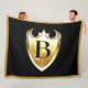 Esta manta de lana muestra la letra mayúscula B en el interior de una elegante calcomanía de colores dorados con un tipo de letra único sobre el panel frontal, con un ambiente delicado y suave, perfecto para picnics, eventos al aire libre y acogedoras escabeches de invierno. Todas las mantas están hechas de una capa de poliéster al 100% con impresión de sublimación de borde a borde y puntas robustas de doble borde con un color de espalda blanco roto.
