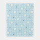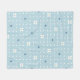 Soft blue seamless pattern featuring white petaled flowers, dark blue diamond shapes, and scattered white oval elements in a symmetrical grid arrangement