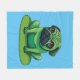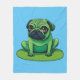 Pug verde lindo que se parece a una rana sentada en un lililipad. Se puede cambiar el color de fondo.
