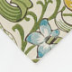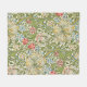 Una manta de lana con un patrón floral del artista británico William Morris (1834-1896), Golden Lily (1896) del período de las Artes y Oficios. Lirios blancos de borde dorado, follaje verde y flores silvestres rojas y azules.