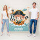 Esta manta de felpa personalizada es el tesoro perfecto para cualquier pequeño bribón. Con un diseño de un niño lindo con un sombrero de pirata que navega valientemente por los mares en un barco de vela con velas a rayas negras y blancas y una bandera Jolly Roger ondeando en alto, esta manta seguramente despertará la imaginación e inspirará sueños de aventuras de piratas.