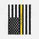 Esta manta tamaño pequeño ofrece una línea amarilla fina bandera americana del despachador blanco y negro junto con un nombre para que usted personalice. tamaños medios y grandes también disponibles en nuestra colección.