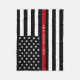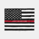 Esta manta tamaño pequeño ofrece una línea roja fina bandera americana del bombero blanco y negro junto con un nombre para que usted personalice. tamaños medios y grandes también disponibles en nuestra colección.