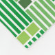 Esta manta de lana media tiene un diseño moderno de líneas verticales verdes de mediados de siglo con rectángulos arriba, repetidos a lo largo del diseño.