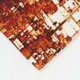 Linhas imperfeitas cruzadas e pequenos quadrados com efeito de entalhado ou esculpido em tons de marrom e laranja escuro que fazem lembrar a cor de ferrugem.