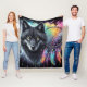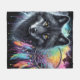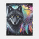 Ilustracion de un lobo con ojos brillantes al lado de un colorido dragaminas, ambientado en un impresionante telón de fondo cósmico, evocando misterio, espiritualidad y una conexión con la naturaleza y los sueños.