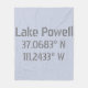 Las coordenadas del mapa GPS de latitud y longitud para el popular área de recreación al aire libre del lago Powell que limita con Utah y Arizona. Fuente gris urbana y moderna sobre fondo gris azul claro.