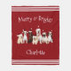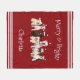 Una manta de Navidades rojos para los amantes de los perros con un nombre diseñado con una fila de perros lindos usando Santa Hats y texto: Merry & Bright, con un nombre. Esta manta tiene un fondo rojo con rayas blancas y letras. ¡Hace un gran regalo para los amantes del perro! Para personalizar, simplemente reemplace el nombre de ejemplo con su elección de nombre, utilizando nuestra plantilla.