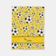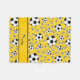 Los balones de fútbol blancos y negros al azar de los deportes conocidos de encargo modernos y de moda modelan el fondo amarillo y con la raya amarilla personalizada con apenas añada sus regalos conocidos o los regalos del monograma o sus iniciales para un regalo único. Ideas del regalo de los deportes para los hombres y muchachos y chicas.