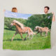 Yegua de Haflinger con los potros juguetones que corren junto a través de un pasto en un paisaje hermoso. Una raza de lino rubia del caballo de la castaña, también llamada haffies o avelignese, foto tomada por Katho Menden. Esta manta cómoda suave grande del paño grueso y suave es una idea del regalo para los amantes http://www.zazzle.com/kathom_photo del caballo -