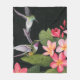 En el Plumeria yo por Grace Popp. Dos colibríes revolotean alrededor de flores rosas tropicales. | 140388GG