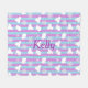 Bonitos Navidades huyen de una manta con rayas moradas y azules, copos de nieve blancos, odios de invierno y mitones. Sólo tienes que añadir tu nombre en el área de personalización. Navidades de bonito o regalo de vacaciones.