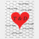 Gran corazón rojo con iniciales monogramadas en texto negro. Te quiero, más te quiero está escrito en el fondo en guión y en negrita patrón de texto contra fondo blanco. Diseño original de obras de arte © TamiraZDesigns.