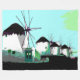 Esta enorme y dramática manta presenta los icónicos molinos de viento sobre la aldea de Mykonos Town, en las Cícladas, Grecia. Los colores se han reducido al azul intenso y al verde, en contraste con el blanco y el negro de los molinos de viento. Hay una selección de tamaños y productos de baño y de ropa de cama a juego.