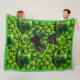 Snuggle up with a bit of Irish luck with this festive Saint Patrick's Day throw blanket this cozy design features a charming black cat dressed as a dancing leprechaun and a classic green buckled suit and hat the all over print background is filled with lush pattern of lucky four leaf clovers and vibrant leprechaun top hats making it the perfect home accessory for March 17 whether you're decorating for Saint Patty's party or looking for a unique lucky charm gift for a cat lover this soft and warm blanket brings whimsical feline magic to any