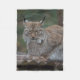Un lince descansando en algo de madera y mirándote directo. El gato con el pelo en las orejas.