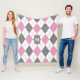 Este patrón geométrico de la manta de pulpa presenta un patrón de manchas rosadas, grises y blancas con "cosido" gris claro que se extiende diagonalmente a través de las formas de diamante - personalizar con monograma - por katz_d_zynes