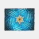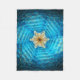 Estrella fractal de David de color azul y amarillo sobre un fondo oscuro. Añade tu propio texto.