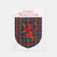 Malcolm Scottish tartan plaid pattern design for the Malcolm Clan Family underneath the red Lion Rampant Shield of Scotland.