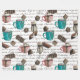 Una tibia y acogedora huella de invierno de chocolate caliente y malvaviscos, cacao, helados, dulces y galletas de chocolate. Patrón perfecto para un día frío de invierno. En colores marrones, verde azulados, rojos, blancos y negros.