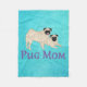 Manta de felpa acogedora de Mamá Pug. Envuelvete en comodidad con esta suave y esponjosa manta de Mamá Pug. El diseño de Pug presenta un par de pugs beige con texto morado que dice Mamá Pug. Estas mantas lavables a máquina están disponibles en 3 tamaños. La parte delantera está impresa de borde a borde en colores vibrantes. El color de la parte posterior es blanco desvanecido. Esta manta de Mamá Pug hace grandes regalos para amantes de los perros Pug y es perfecta para abrazar en clima fresco.