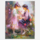 Un cuadro generado por IA de dos chicas admirando las flores en un jardín.
