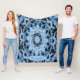 Diseñado a partir de una fotografía de flores de la madrugada, esta mandala azul claro ha sido estilizada para recordar el encaje vintage pero con un fondo negro contemporáneo. La acogedora manta de lana puede ser personalizada para un toque especial.